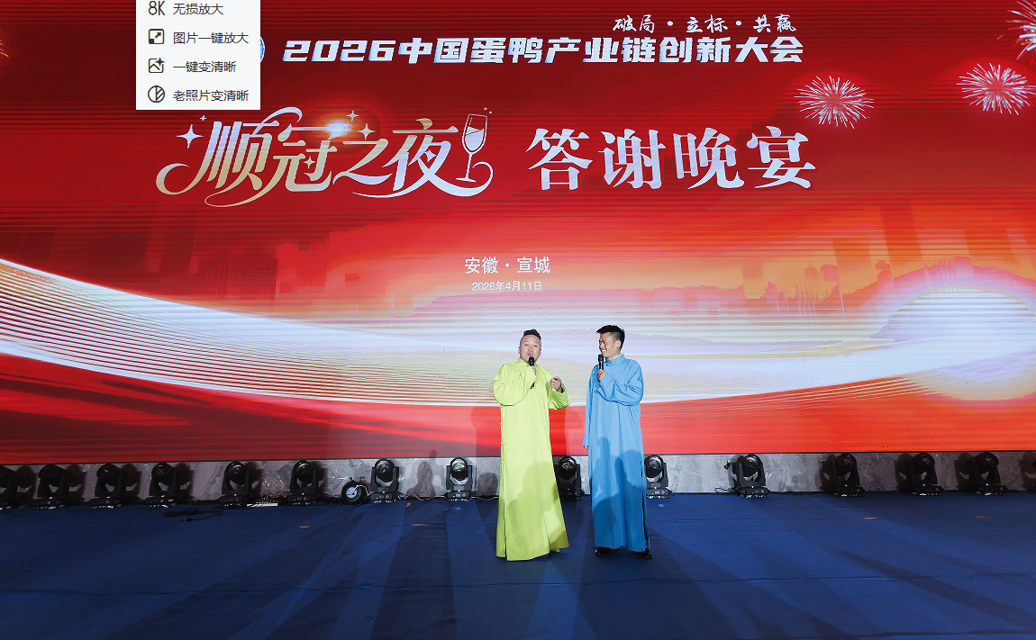 4月11日,2026(第三届)中国蛋鸭产业链创新大会在安徽宣城盛大启幕。大会以破局・立标・共赢为主题,汇聚全国蛋鸭产业链政、产、学、研各界代表约 600 人,聚焦产业转型升级痛点,共商标准化、绿色化、智能化发展路径。